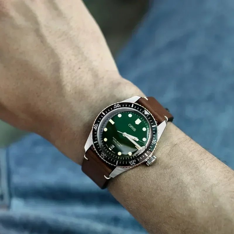 שעון גברים עם חגורה מוארת בצבעים ירוק ושחור בסגנון קז'ואלי, עם שלושה מנועים ידניים דקים ומנגנון קוורץ אוטומטי של Oris Divers לשנת 2025 – AliExpress 1511